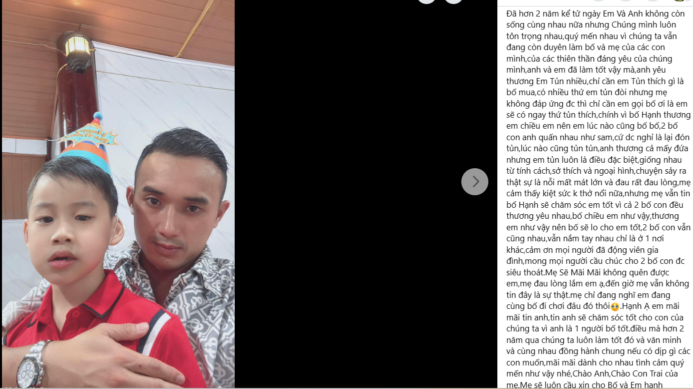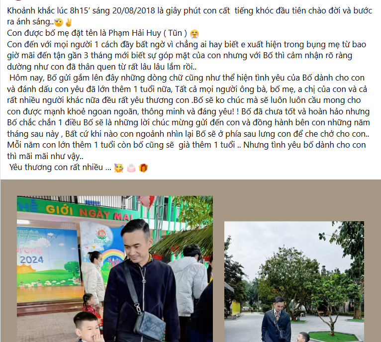 Cách đây không lâu, anh cũng dành một stt dài đầy tình cảm dành cho con trai. Vậy mà chỉ sau đó ít lâu, 2 cha con đã rời xa mãi mãi…