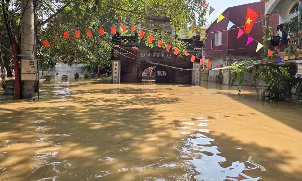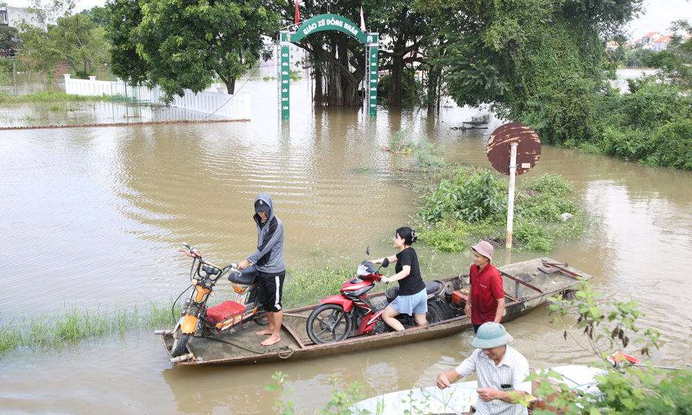 Tổ dân phố Thổ Hà, phường Vân Hà hiện vẫn bị nước lũ ngập sâu, hàng trăm hộ dân bị cô lập.